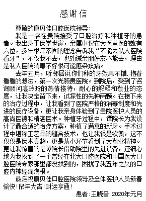 千言万语的感谢最后也只能汇成一句祝福的话:真心祝愿康贝佳口腔的全体医护人员身体健康,全家幸福!