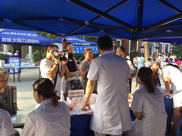 康贝佳口腔(大连)在现场设立了2个口腔义诊大棚,一共去了14名牙齿种植、牙齿矫正、牙齿美容等口腔专家,为附近的社区居民进行口腔解答。